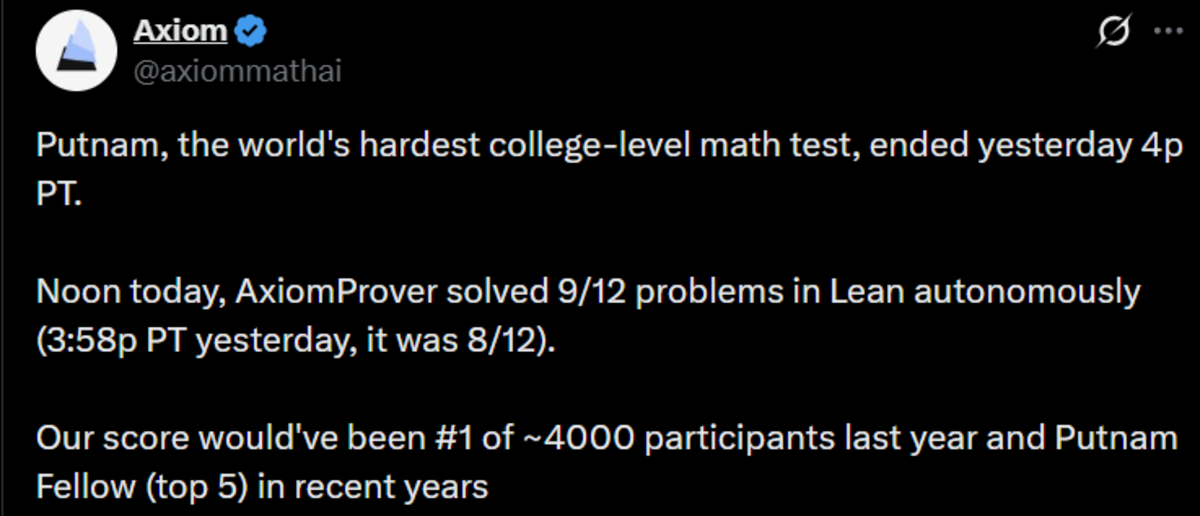 Mô hình AI của Axiom tự động giải các bài toán Putnam siêu khó (Nguồn: x.com)
