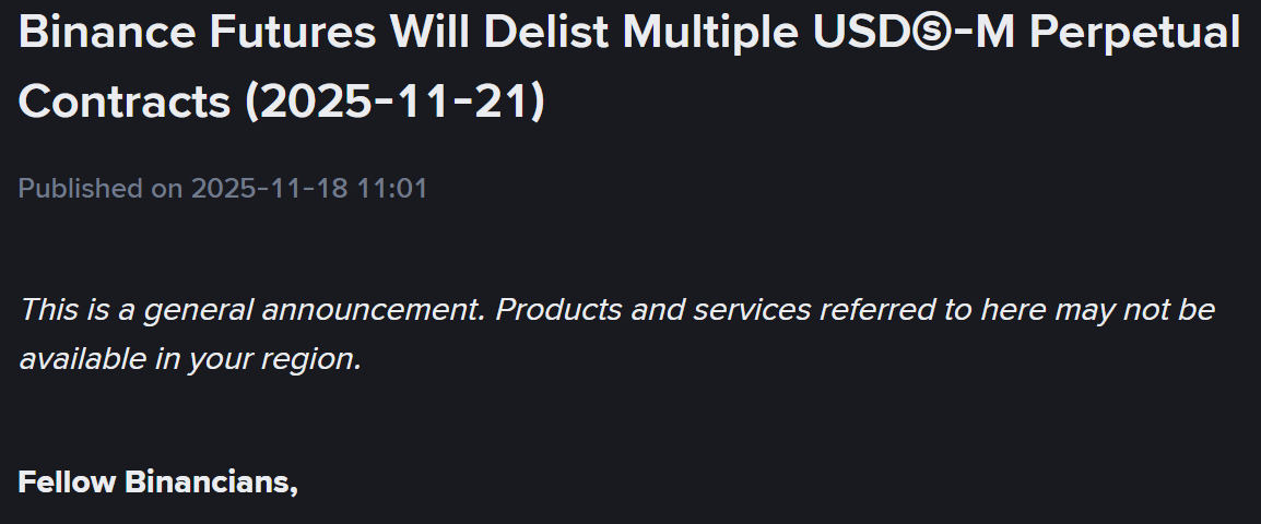 Đối với Binance Futures, sàn cho biết sẽ đóng toàn bộ vị thế và tiến hành thanh toán tự động đối với 3 hợp đồng Futures gồm XCNUSDT, FLMUSDT và PERPUSDT vào lúc 16 giờ ngày 21/11/2025 (theo giờ Việt Nam). Từ 15:30 cùng ngày, người dùng sẽ không thể mở vị thế mới trên các hợp đồng này. Đáng chú ý, trong giờ cuối trước khi thanh toán, Binance sẽ không sử dụng Quỹ Bảo hiểm Futures, toàn bộ các lệnh thanh lý sẽ được xử lý bằng IOCO (Immediate or Cancel).