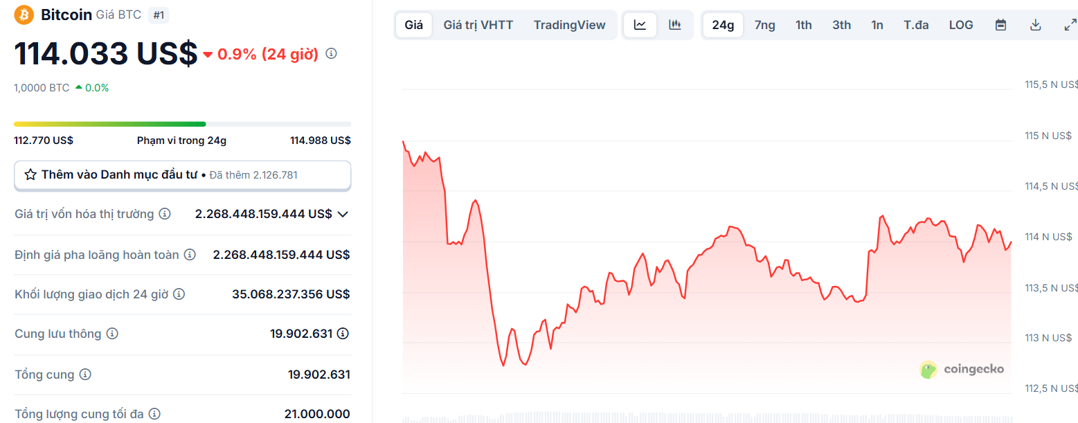 Tính đến thời điểm viết bài, giá BTC (Bitcoin) hiện giao dịch quanh mốc 114.000 USD - giảm gần 1% trong vòng 24 giờ qua. Theo dữ liệu từ CoinGecko, vốn hoá thị trường của BTC đạt gần 2.27 nghìn tỷ USD. Mặc dù gây quỹ thành công, cổ phiếu của công ty Satsuma (mã: SATS) trên Sàn giao dịch Chứng khoán London lại bất ngờ giảm mạnh 25% ngay trong sáng thứ Tư. Điều này phản ánh tâm lý dè chừng của một bộ phận nhà đầu tư truyền thống trước chiến lược tài chính mới của công ty.